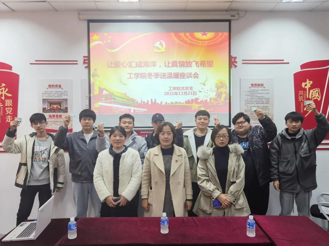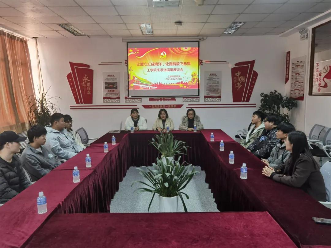 青岛恒星科技学院工学院于2021年12月21日在A4近思楼813工学院会议室开展了“冬季送温暖”座谈会。此次座谈会由工学院党支部书记潘娜娜主持,主要为需要帮助的学生献出一份爱心,希望学生们可以过一个温暖的严冬,让他们感受到学校这个大家庭的温暖,能够安心的学习和成长。