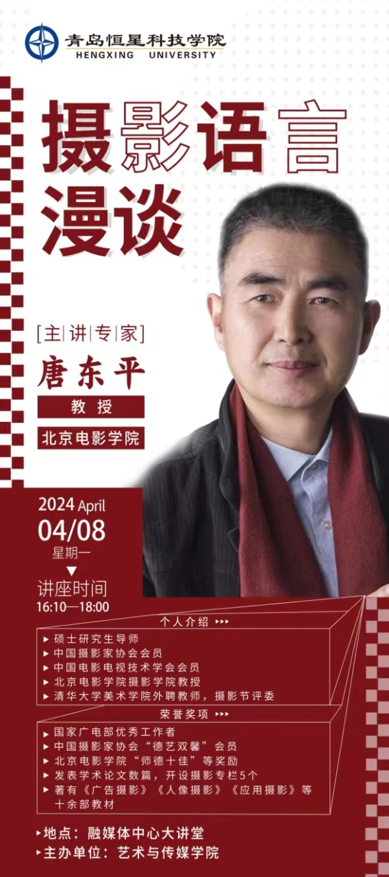 4月8日,一场主题为“摄影语言漫谈”的讲座在我校融媒体道德大讲堂召开。讲座上,北京电影学院唐东平教授结合多年实践,深入浅出地为我校师生讲述了什么是摄影语言,并用生动的案例,让大家领略了摄影艺术的魅力所在。
