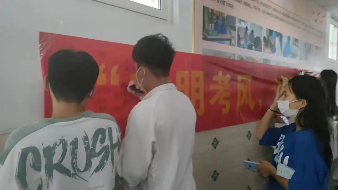 随着期末考试临近,为端正考风考纪、保证考试的严肃性和公正性,加强学风建设。青岛恒星科技学院健康管理学院于2022年6月2号在传习楼A8六楼走廊举行“文明考风,诚信考试”签字活动。