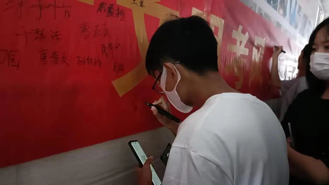 签字仪式上,同学们郑重地在诚信横幅上签上自己名字,同时表示将坚守文明考风、良好的学风、文明的校风,自觉抵制考试作弊行为,做一名文明诚信的恒星学子,考出真实水平,考出真才实学,考出诚信风采。