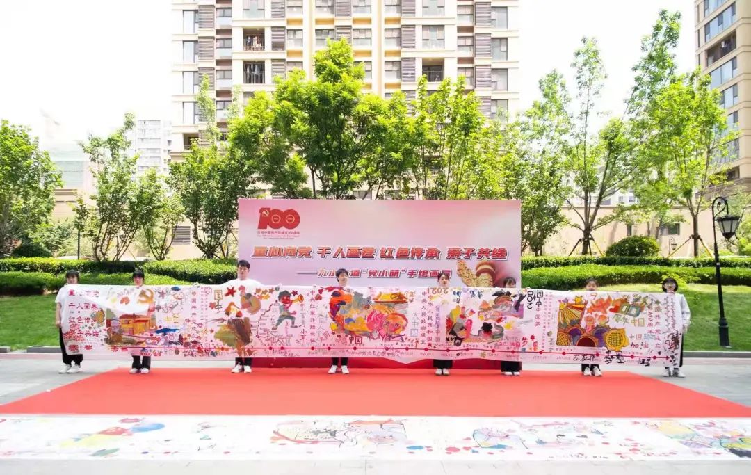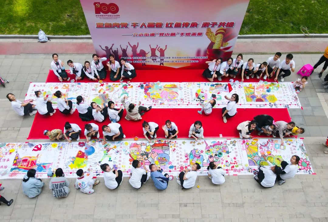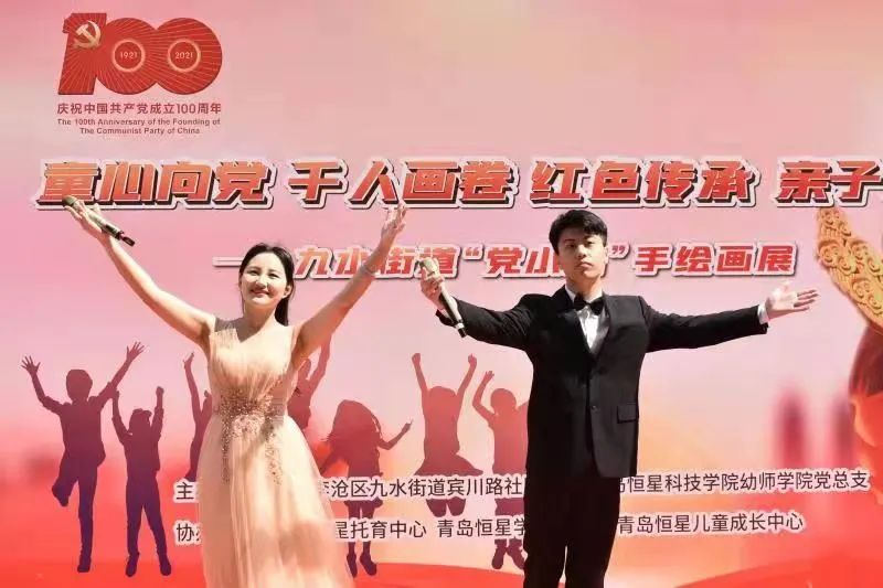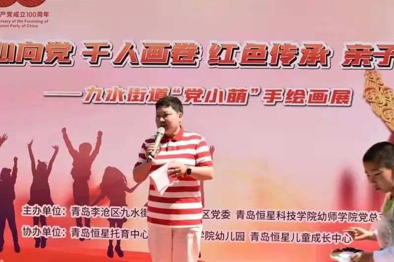 为迎接建党100周年、传承红色文化,同时促进大学生成长成才。青岛恒星科技学院幼师学院党支部于2021年5月30日在九水街道如园小区开展“童心向党,千人画卷,红色传承,亲子共绘”的活动。幼师学院党总书记陈海艳书记、幼师学院实训党支部书记王清书记带领恒星幼儿园教职工、幼师学院学生党支部发展党员和学院学生志愿者参加了此次活动。