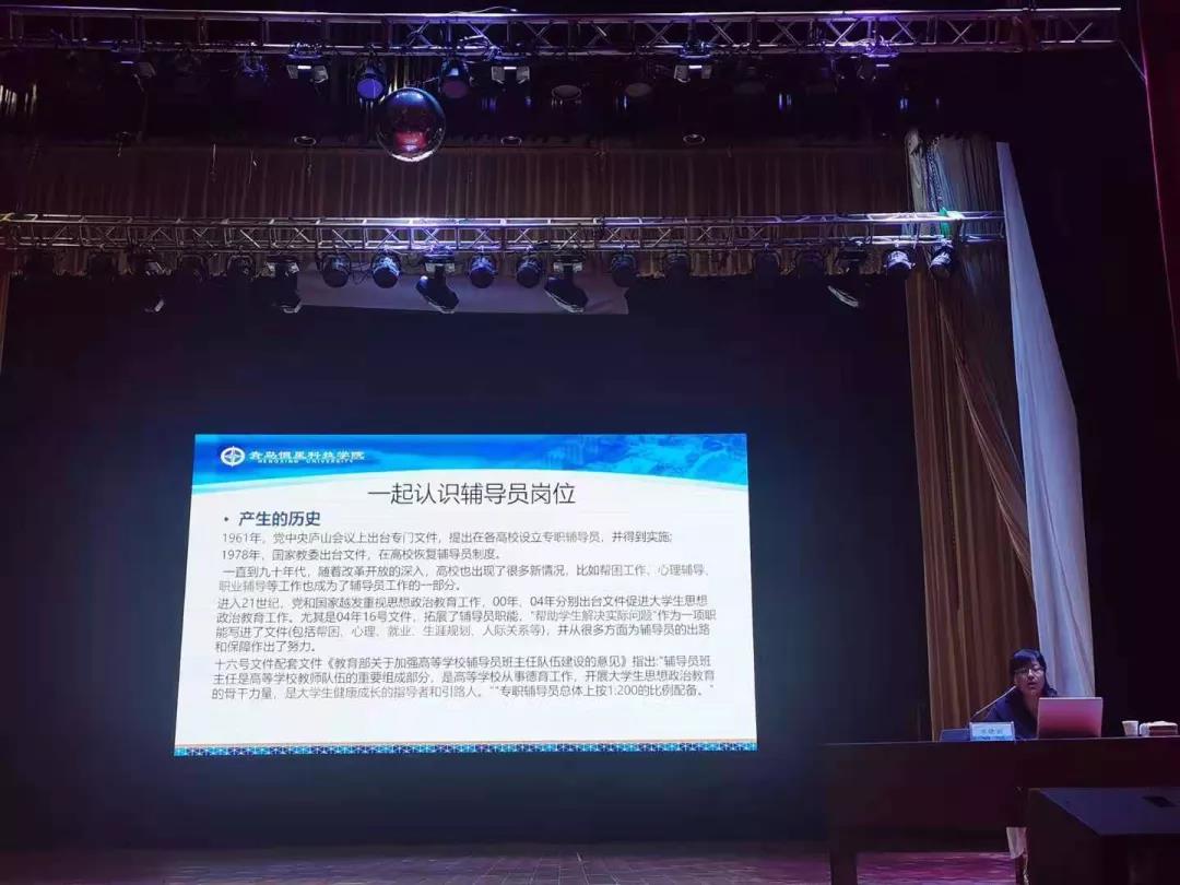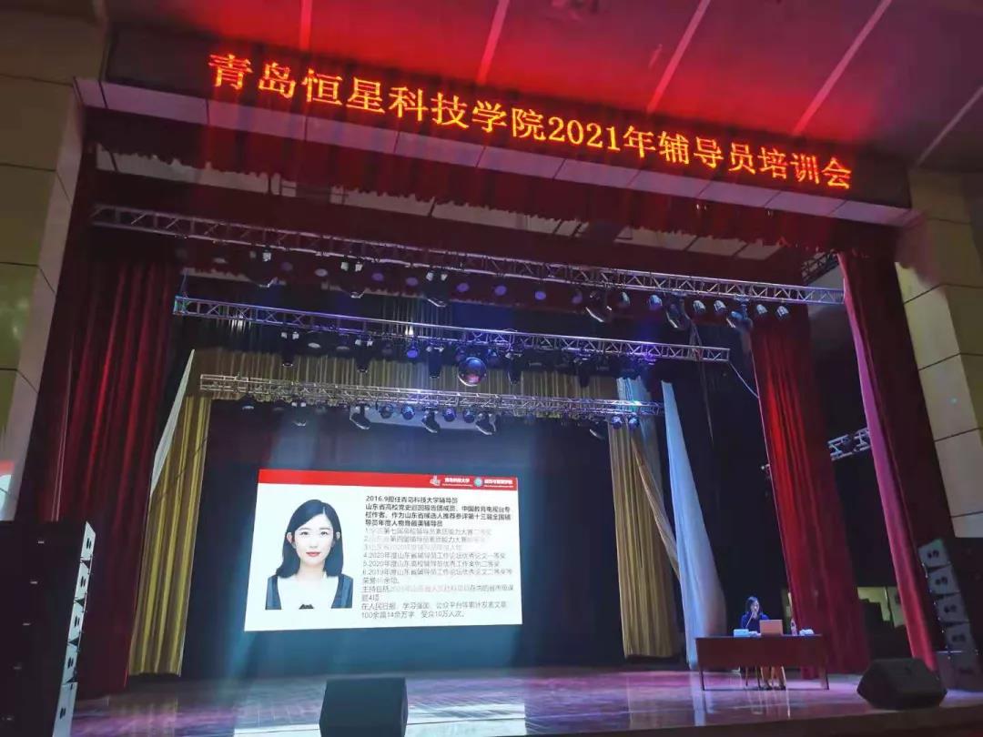 同时,我们邀请了青岛科技大学经管学院学工办主任、团委书记,中国教育电视台专栏作者,山东省高校党史巡回报告团成员王聪老师为青岛恒星科技学院辅导员授课。通过王老师的《练好基本功,让爱有力量》主题讲座,使我校各位老师对“辅导员”这三个字的理解更为深刻。
