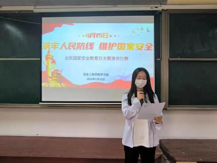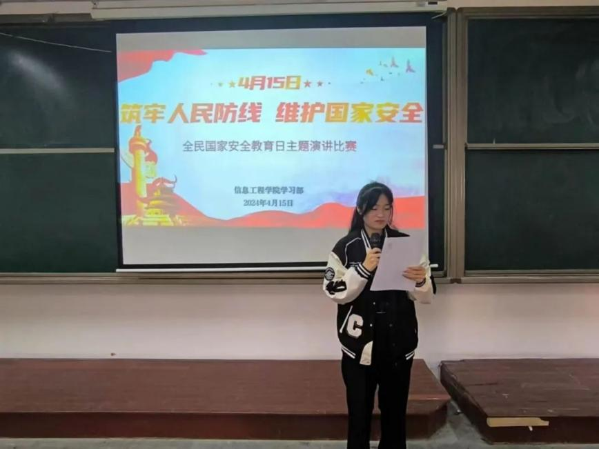 信息工程学院举办了“筑牢人民防线,维护国家安全”主题演讲比赛。本次主题演讲活动进一步提高了学生对国家安全的认识,增强同学们维护国家安全的使命感和责任感,营造共筑安全屏障的浓厚氛围,为筑牢国家安全“钢铁长城”打下坚实基础。