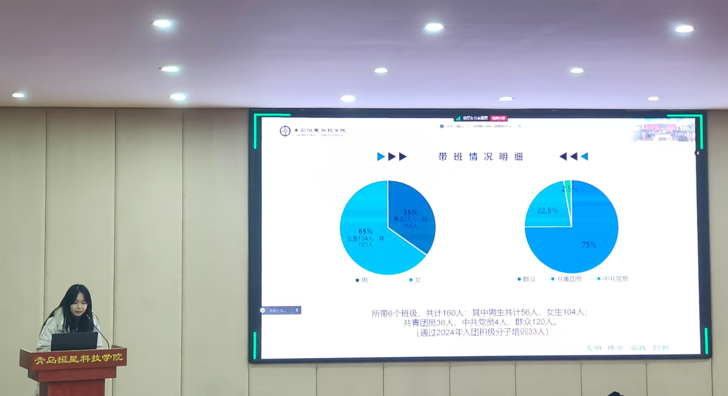孔雅文老师就自我介绍,分管学生基本情况等4个方面展开论述: