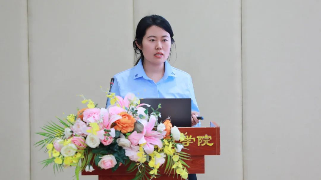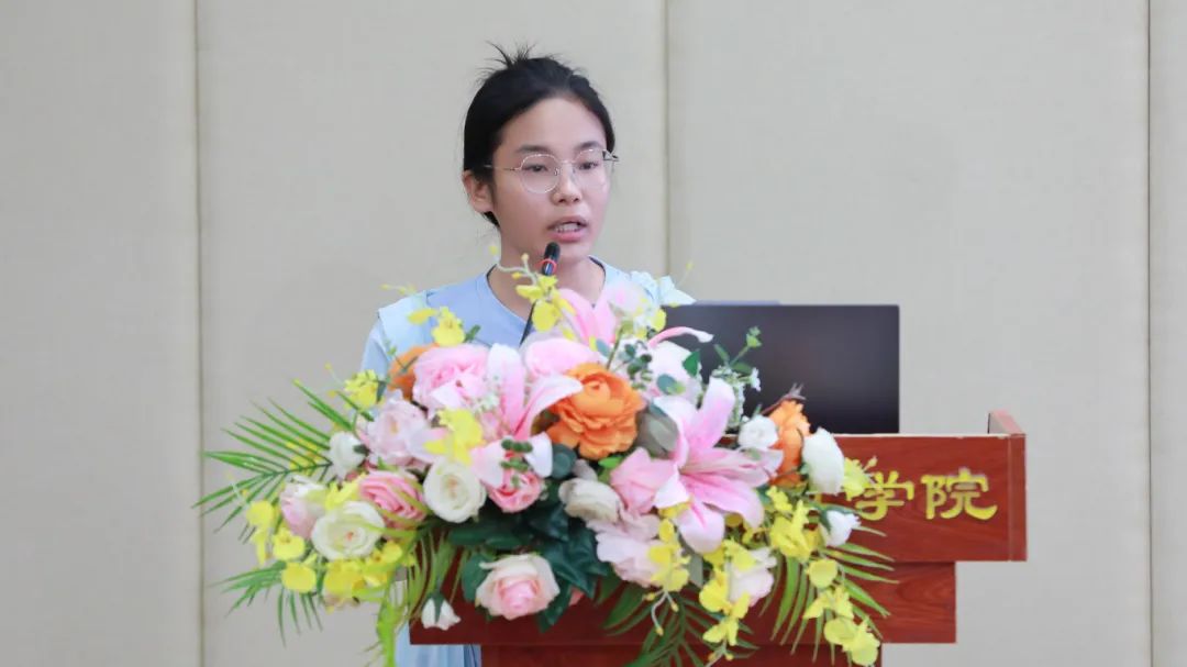 学生代表——王鑫彬介绍了《从实验室到田间地头——学社实践与专业学习的相辅相成》。 “实验室数据指导田间管理,田间问题反哺科研方向。”她生动展现“双线融合”的学习魅力。