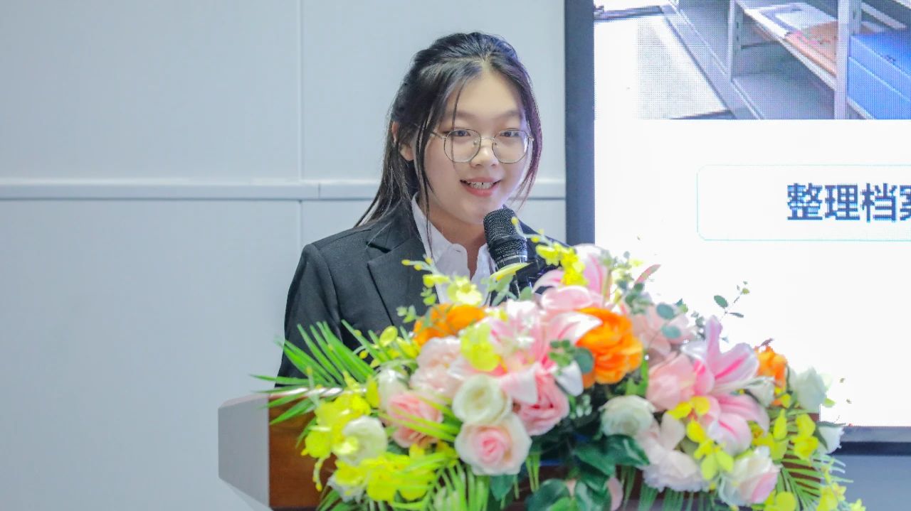 学生代表苏天华率先分享《破茧·生长·共创——专业认知升维》。她结合自身经历,生动讲述从初涉专业的迷茫,到在数智时代不断突破自我、协同创新的成长历程,展现出青年学子积极进取的精神风貌,引发在场学生的强烈共鸣,让大家看到了在专业学习中勇于探索、不断成长的无限可能。