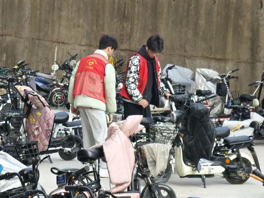 活动中,志愿者们深入到知行书院和青峰学院楼前车辆密集区域,将车辆按规定摆放整齐,并劝导正在使用电动车的同学自觉按规定文明使用和停放。在日常生活中发现共享单车乱停放现象时,伸出援手将其有序摆放整齐,并以此影响更多的人自觉使用共享单车。