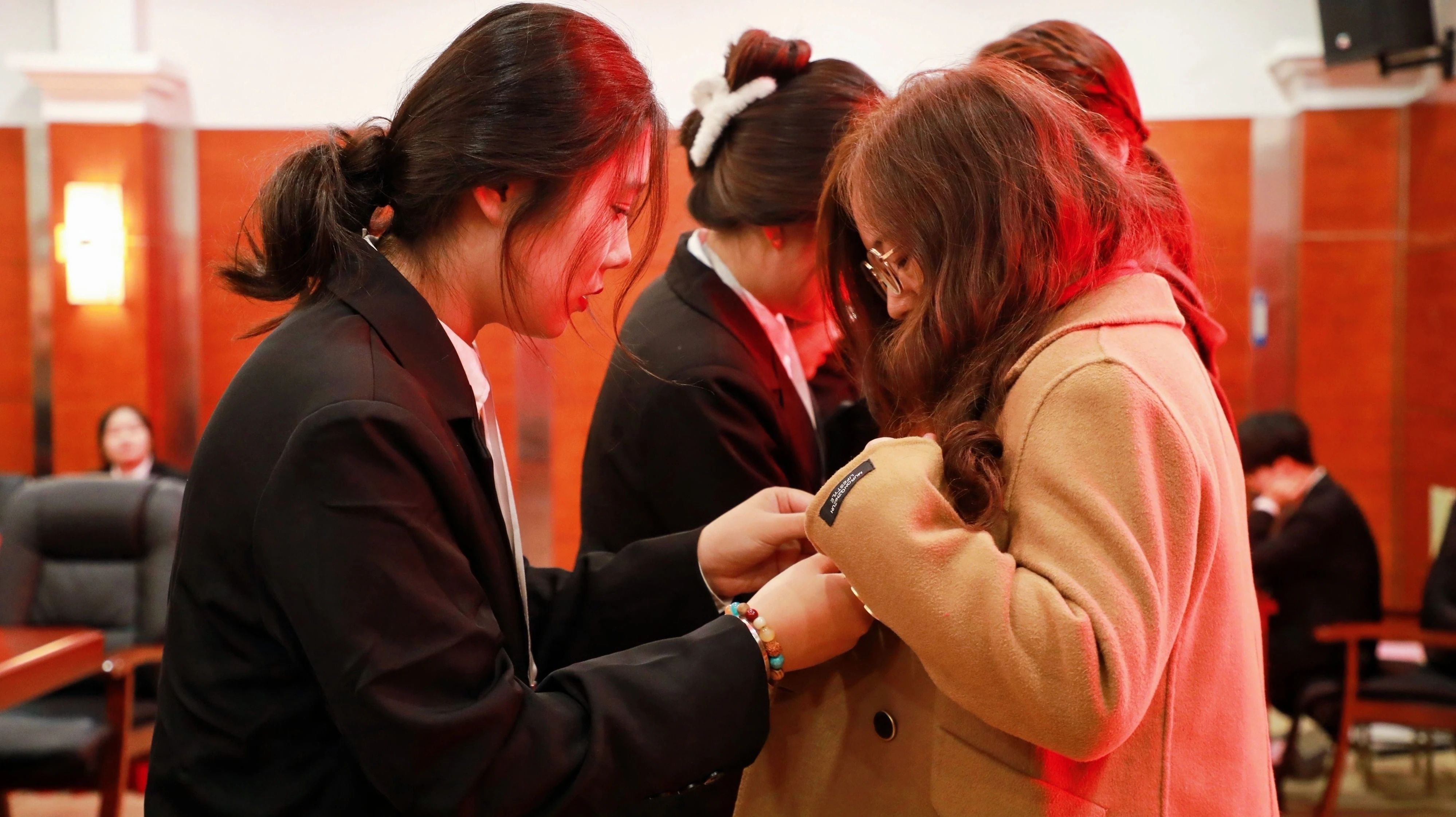 那一枚金色校徽承载着沉甸甸的责任是期许 也是嘱托24级学弟学妹为04级校友佩戴校徽18岁很好 28岁也不错38岁其实更好这次归来身份不只是校友更是学弟学妹的导师
