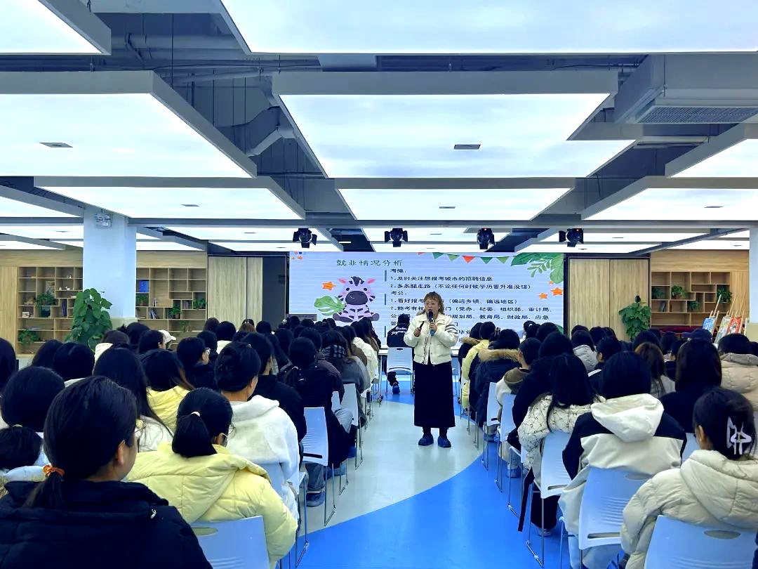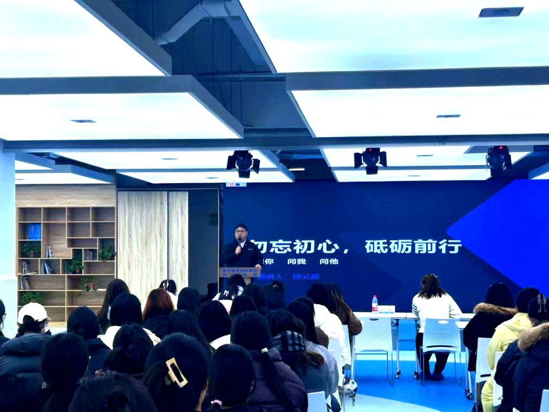 另一位校友钟义新,2012届商务英语学前教育1201班的佼佼者,现任青岛华置伟业集团融资顾问。他以独特的视角深入剖析了就业形势和行业内卷现状,并分享了职场初期的适应经验。钟义新的分享,不仅让师生们提前了解了职场挑战,更学会了如何平衡生活与工作,提升职业规划能力,为未来就业打下了坚实的基础。