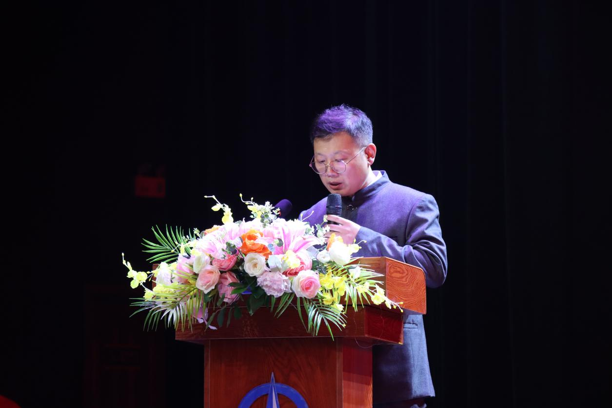 人文学院党总支书记、文教集团执行总裁、恒星东佳书院执行院长刘振勇发表致辞。刘振勇满含深情地回顾了“君子向未来”研修班过去一年的发展历程及取得的宝贵成果,强调了在新时代背景下,传承与发扬中华优秀传统文化对于提升国民素质、增强文化自信的重要意义。在对社会各界、学校领导、研修班工作人员等表示了真诚感谢的同时,他也对未来一年的工作进行了展望,表示将继续深化培训内容,拓宽传播渠道,让更多人受益于传统文化的滋养。相信,在大家的共同努力下,“君子向未来”研修班一定会越办越好,成为山东乃至全国传承与弘扬中华优秀传统文化的重要阵地。