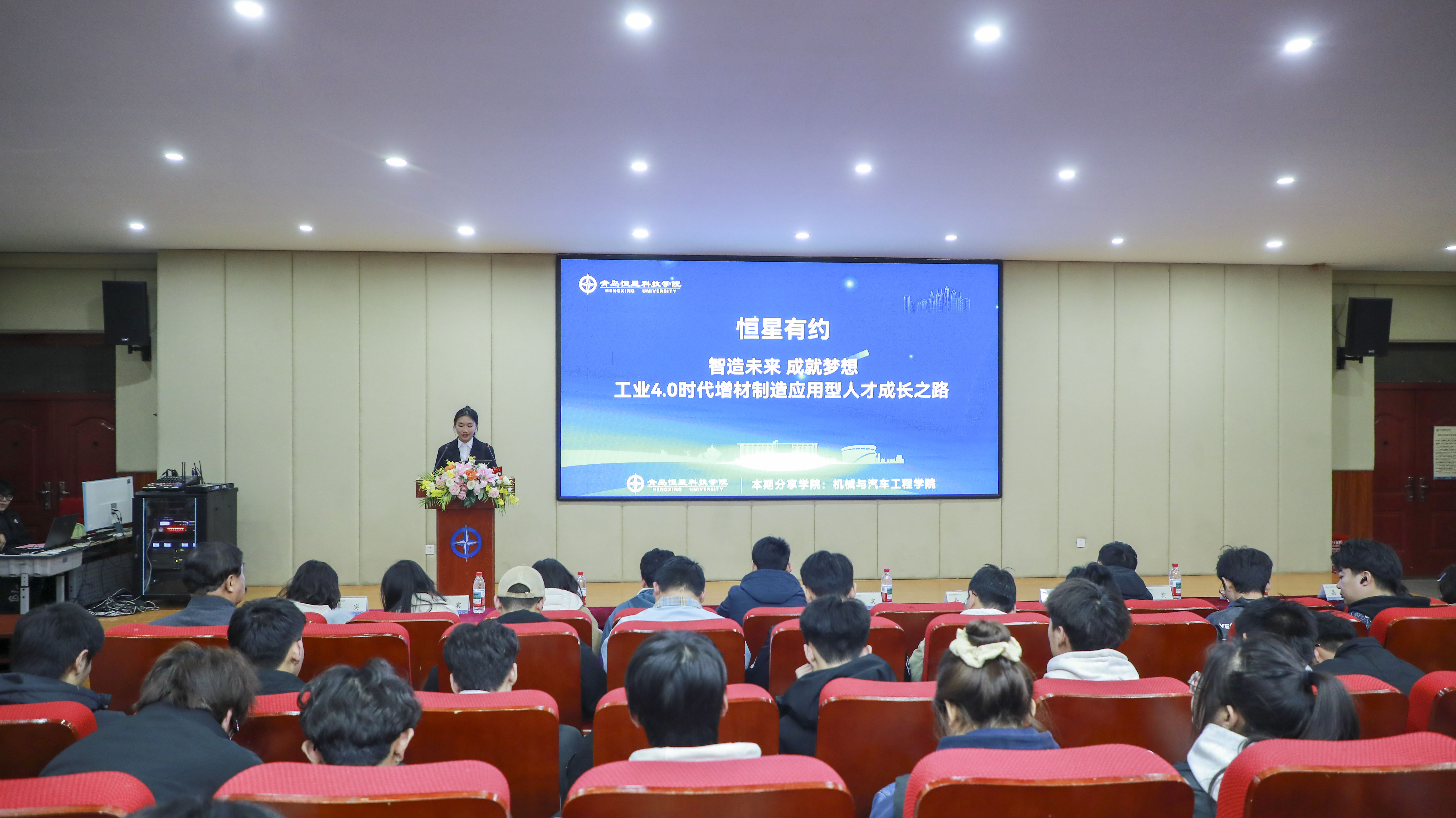 机械与汽车工程学院党总支副书记张家一、智能制造行业学院院长王海涛,青岛恒星科技学院学生发展处于霄雯,机械与汽车工程学院各行业学院导师代表以及全体辅导员出席本次活动。