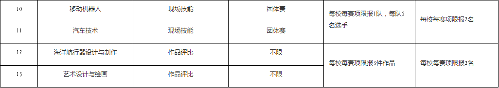 大赛共设置13个赛项,分为作品评比和现场技能竞赛两大类。