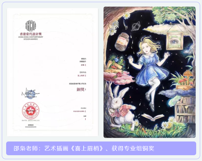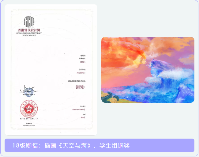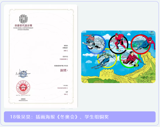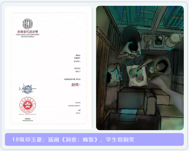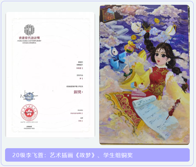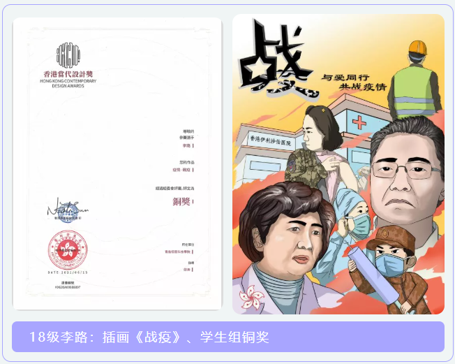 近日,香港当代设计奖评审揭晓,艺术与传媒学院数字媒体艺术专业8位学生的插画作品分别斩获学生组银奖、学生组铜奖,他们分别是:李飞萱、李路、李新宇、罗浩、卿福、吴昊、郑乐伟、邓玉豪,指导教师邵枭老师的作品获得专业组铜奖。