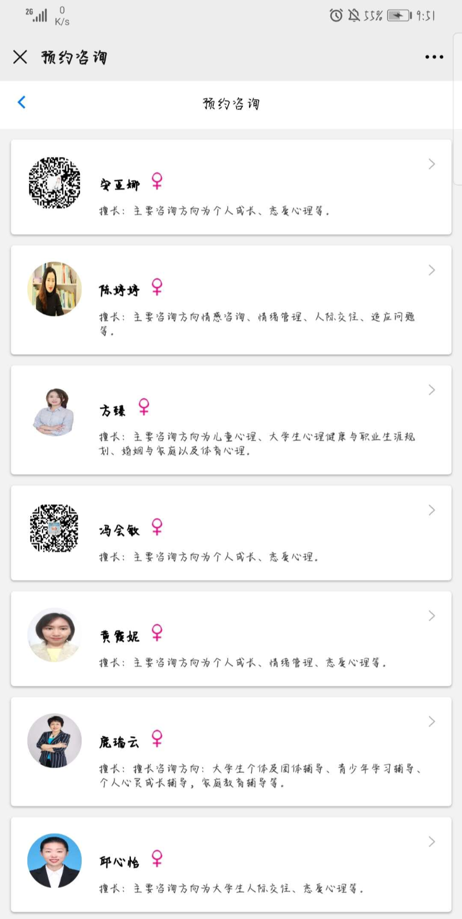 同学们可根据系统上心理咨询师的排班情况,选择相应的咨询师进行预约。