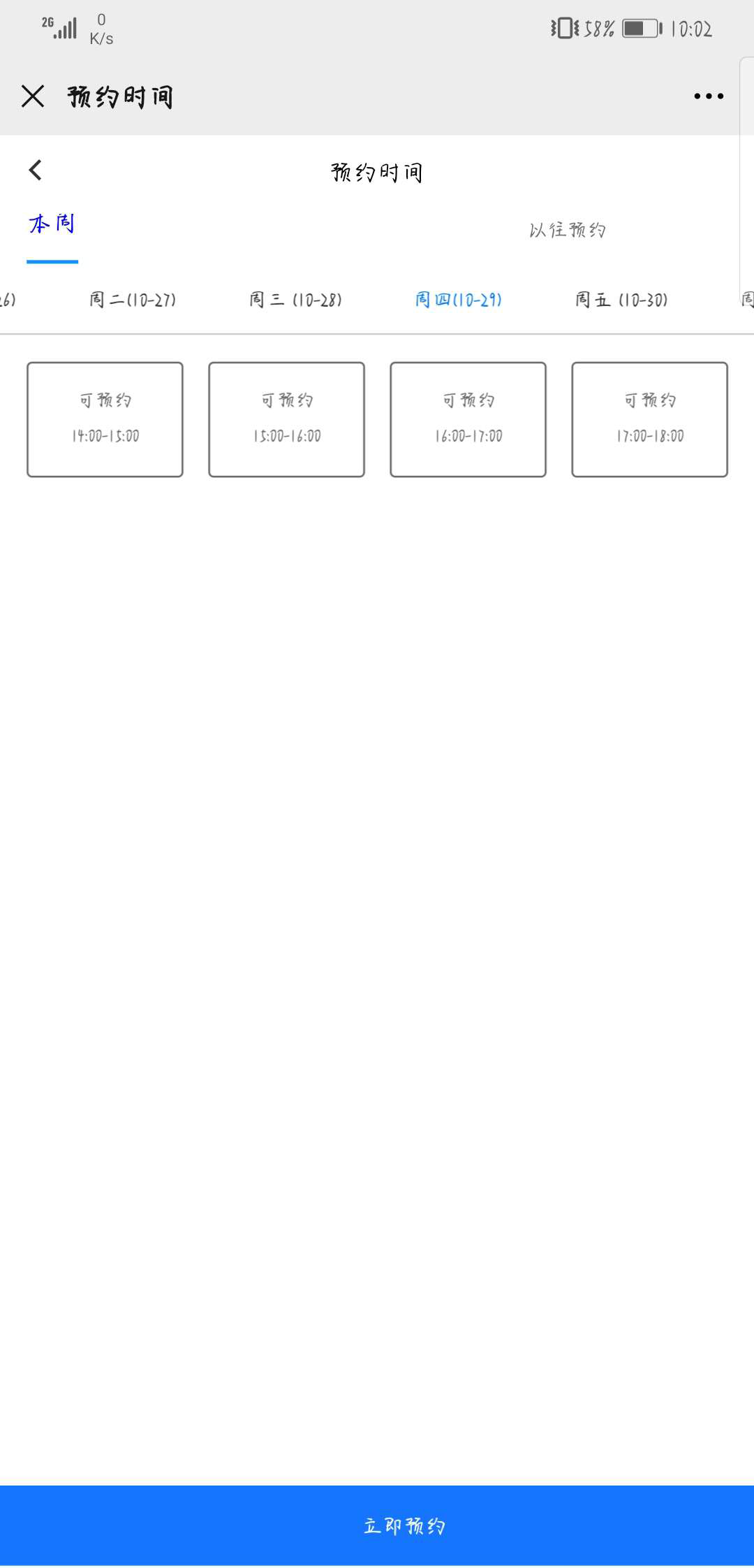 (五)选择想要预约的咨询师,进入预约时间界面,查看并选择可预约的时间段,选择【立即预约】;