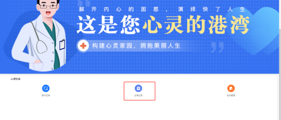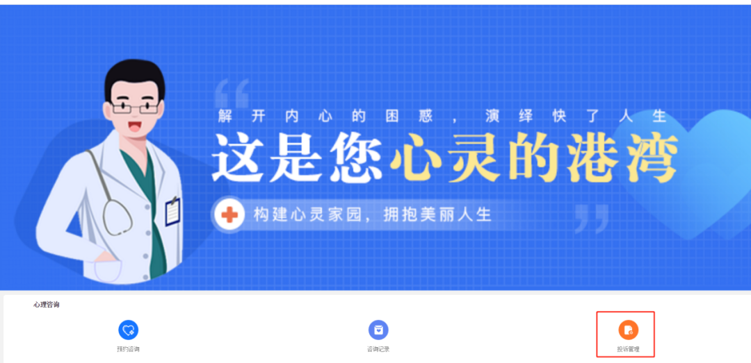(一)在心理咨询界面,选择【投诉管理】,可以发起投诉;