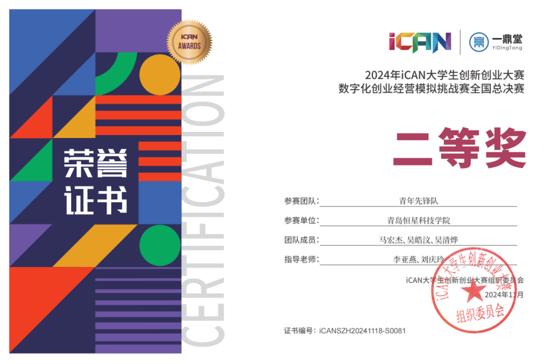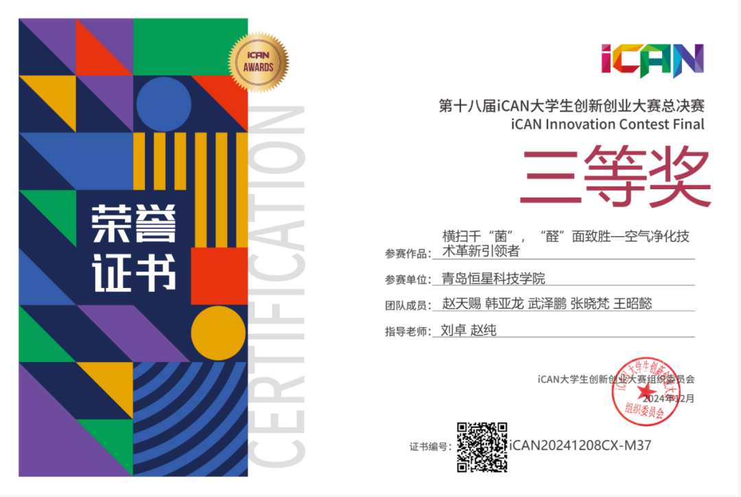 近日,第十八届iCAN大学生创新创业大赛全国总决赛圆满落幕,我校商学院“青年先锋队”“三人行队”两支代表队在数字化创业经营模拟挑战赛道分别荣获国家二等奖的殊荣。同时,机械与汽车工程学院《横扫千“菌”,“醛”面致胜—空气净化技术革新引领者》《智能关怀—红外热射车内防窒息报警系统》也凭借卓越的创新实力,荣获国家三等奖的佳绩。