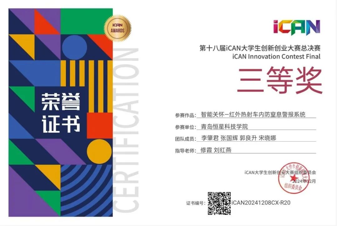 机械与汽车工程学院《智能关怀—红外热射车内防窒息报警系统》团队获国家三等奖