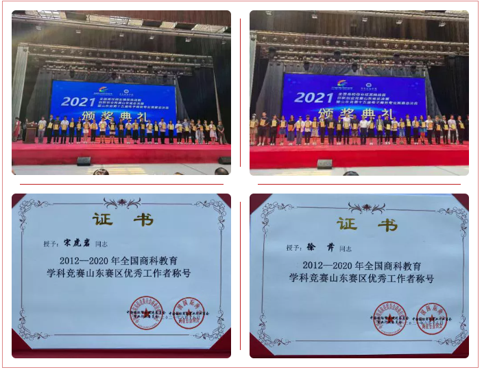 另外获得卓越院校贡献奖和最佳院校组织奖集体奖项,徐芹老师、宋虎岩老师获得优秀工作者个人单项奖。