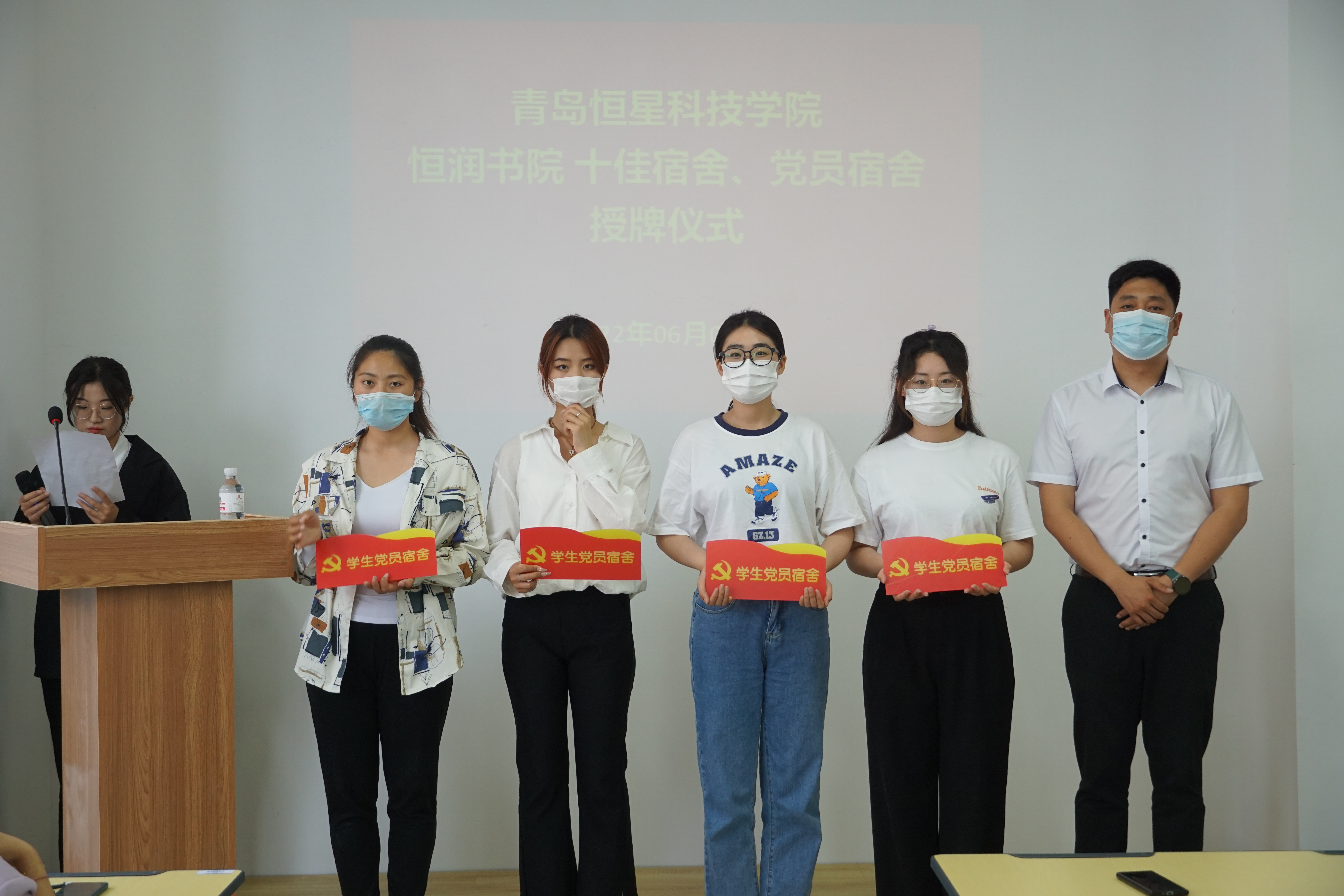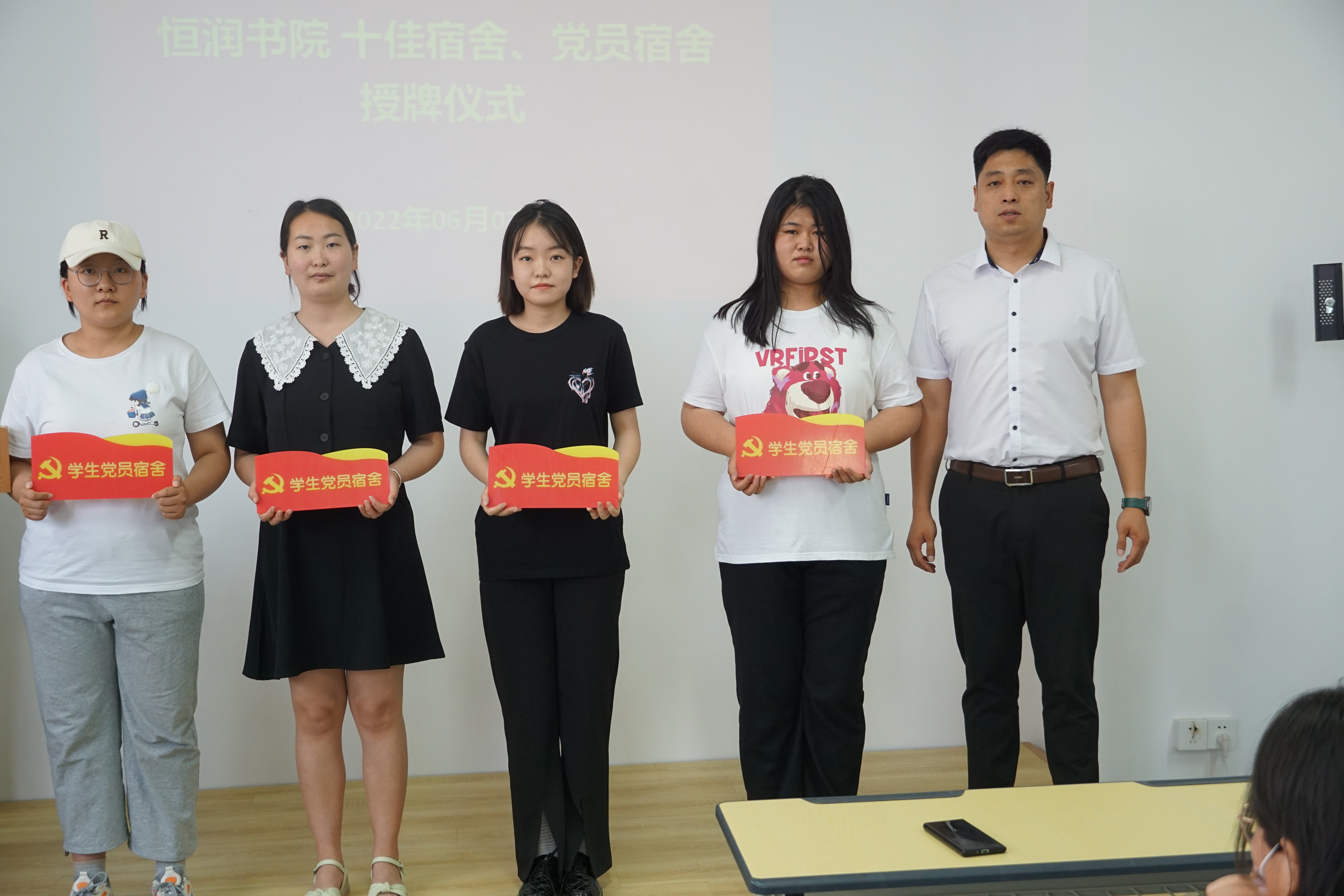 为进一步在书院内部树立典型,发挥党员的先锋模范作用,同时促进宿舍文明建设,充分发挥优秀学生的模范带头作用,2022年6月2日,在恒润书院一楼多功能报告厅举行“党员宿舍”和“十佳优秀宿舍”授牌仪式。恒润书院执行院长张良和恒润书院副院长崇加浩出席了此次授牌仪式。