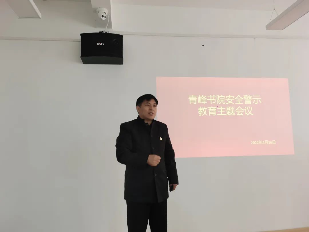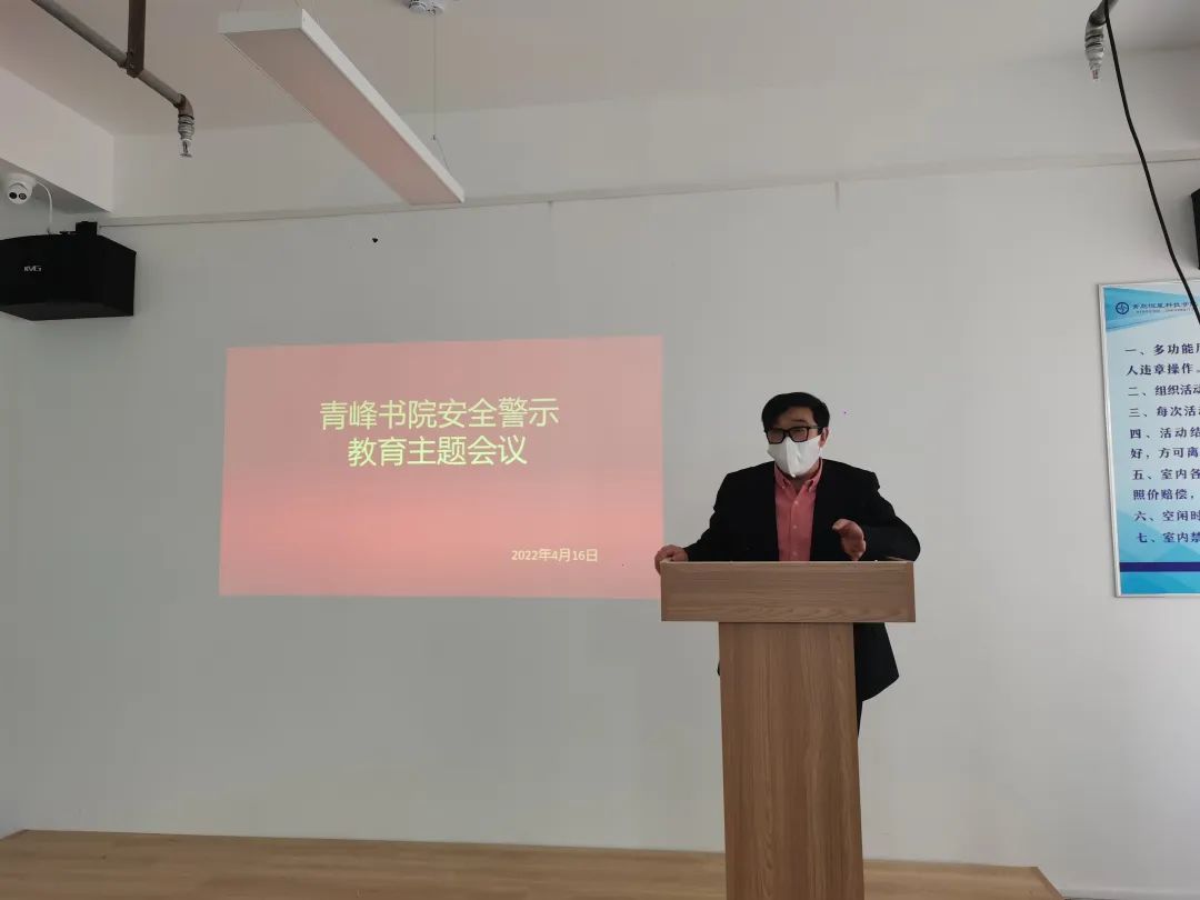为贯彻落实青岛恒星科技学院关于校园安全教育的有关工作,确保书院师生生命财产安全。2022年4月15日青岛恒星科技学院青峰书院召开了“青峰书院安全警示教育主题会议”。会议由青峰书院徐飞老师主持,学生处刘良好老师为主讲人,管军主任、青峰书院辅导员及部分学生骨干共同参会。