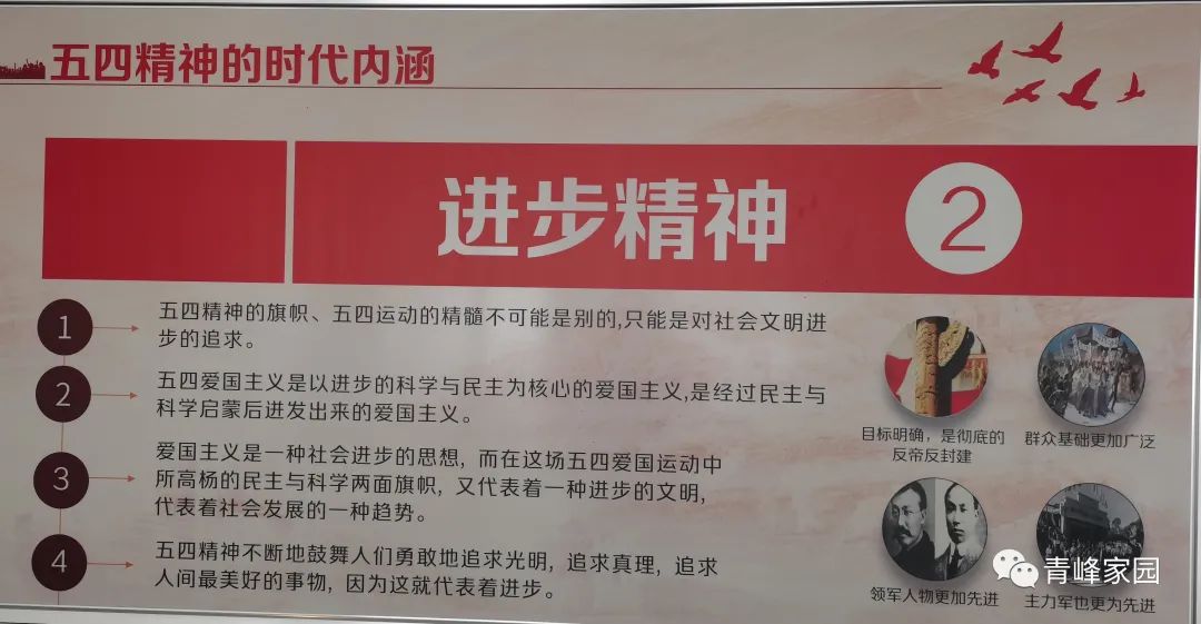 “传承五四精神,争做青年先锋”。1919年爆发的五四运动留下最宝贵的财富就是为国人所传承的“五四精神”,这100多年来,“五四精神”已成为当代中国青年努力奋斗、不断进取的形象符号。“五四精神”以其厚重的历史内涵、强大的精神力量一直鼓舞着中华儿女。