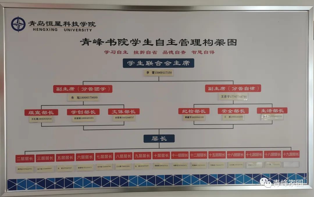 青峰书院由张凤东副校长担任书院院长、满德全院长为执行院长、王玉华院长为副院长,下设各学院老师共计12位辅导员,同时书院设立20余位主席团成员共同管理书院。