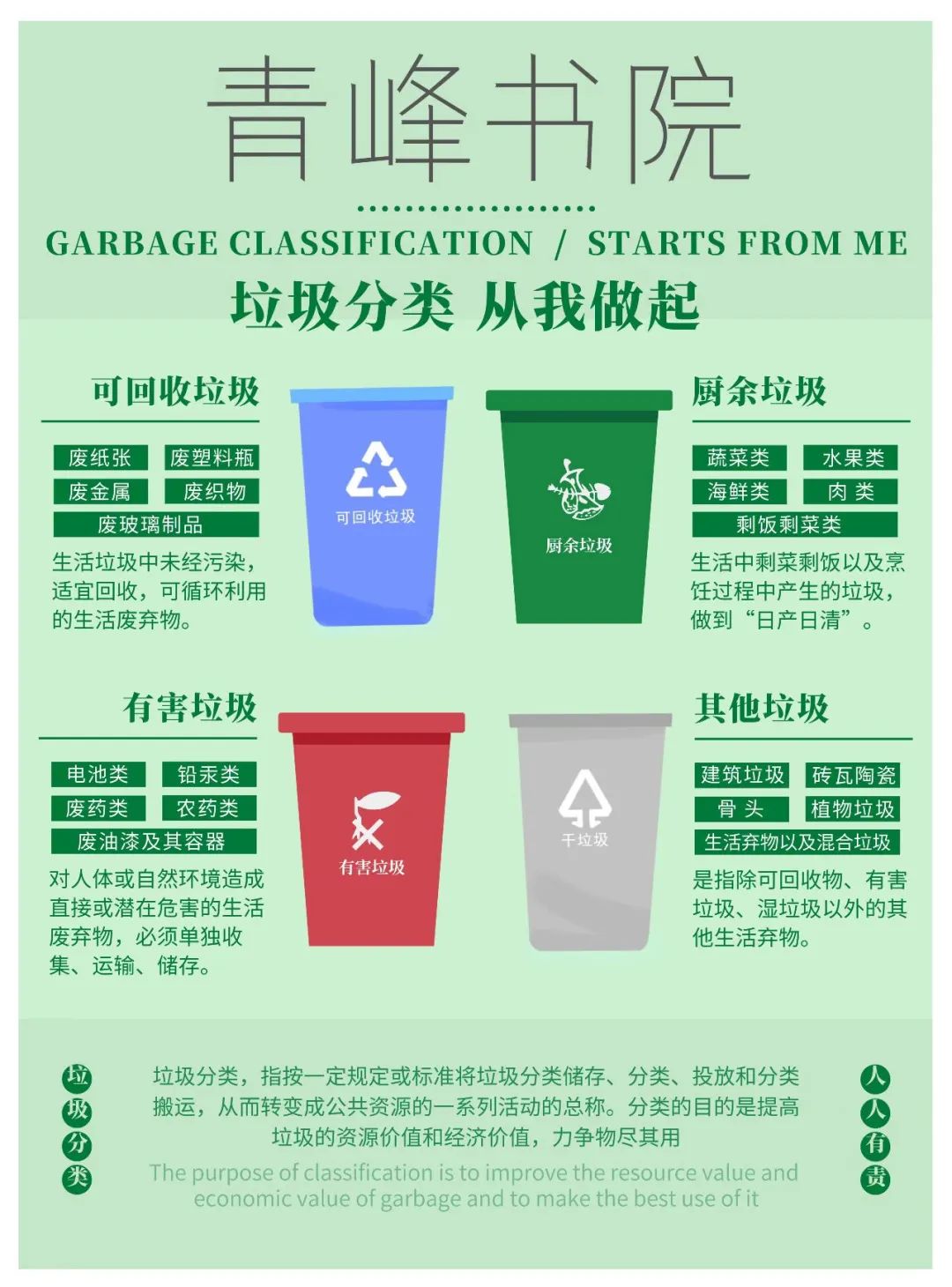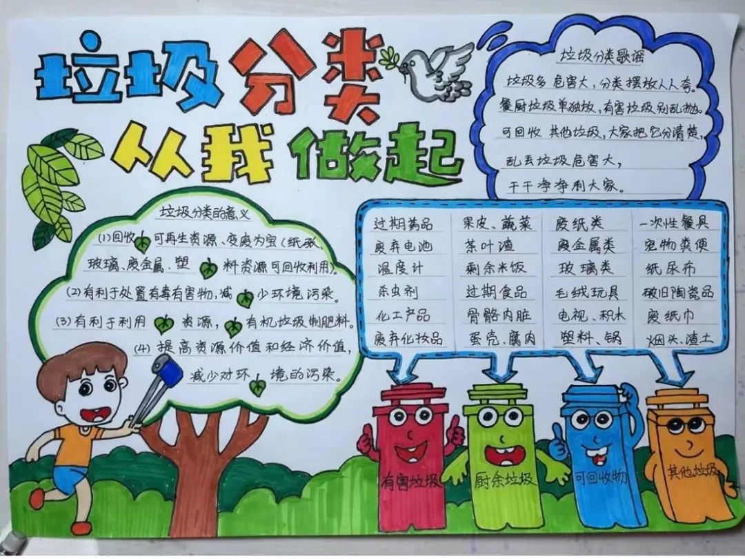 为学习垃圾分类知识,规范生活垃圾分类投放、收集和运输行为,青峰书院于5月14日开展“垃圾分类我先行”手抄报活动,以绘画的方式增加同学们对垃圾分类的认识,掌握正确的垃圾分类方法。