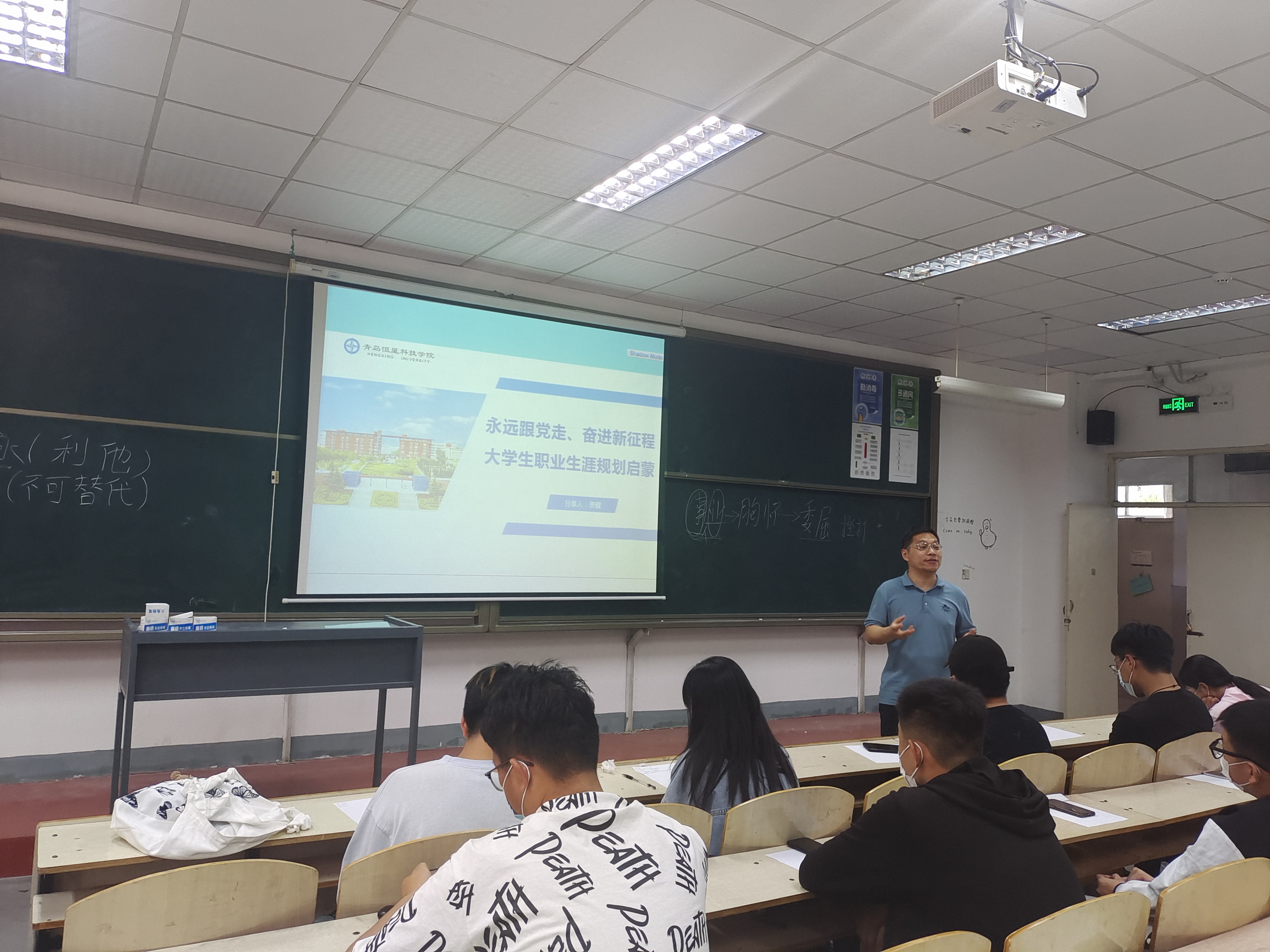 贾处长用自己的亲身经历告诫同学们,目前我们所面对的困难都是为了让我们不断提升、不断超越自己。并鼓励同学们要精进学习,在扎实的学习中充分认识自我,通过丰富的实践活动检验自我,做出自己的职业抉择。我们要牢记使命,有责任有担当,青春才能闪光,要将自己的职业生涯规划融入国家发展大局中;我们要审时度势,审视自己、审视社会、审视发展大局,立足自身揣度行业发展大势,要以清醒的头脑找寻清晰的职业生涯规划方向,擘画人生宏伟蓝图。我们还要砥砺前行,坚持自主学习,全方位提升个人素养,要对自身和环境等主客观因素进行总结、分析和判断,树立职业目标,时刻准备着投身到社会主义现代化建设当中去。