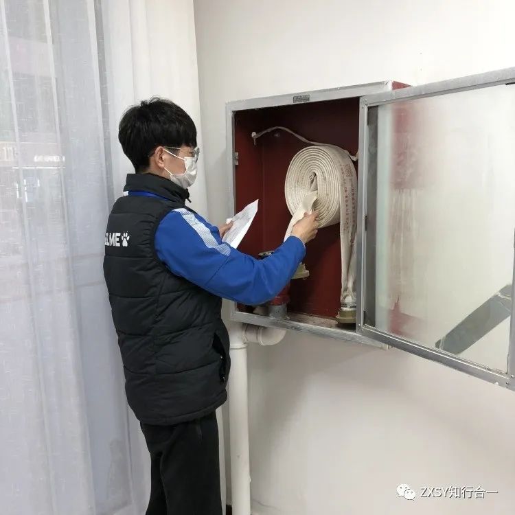 知行书院赵兴华老师,在封校期间检查书院内消防及电力设施是否正常。
